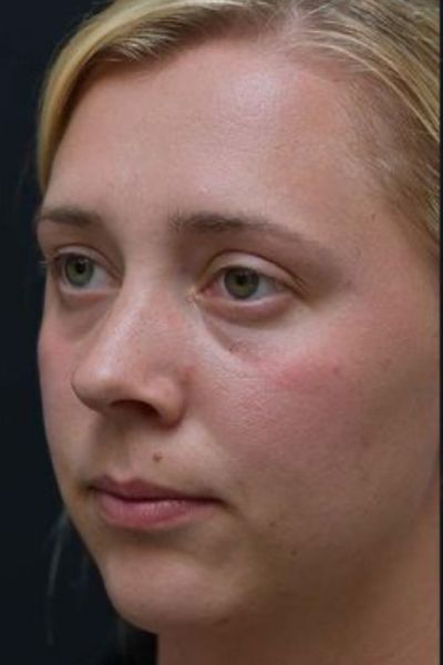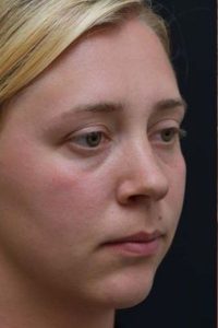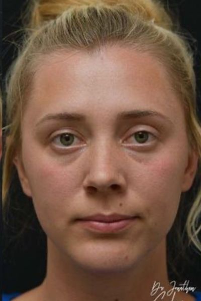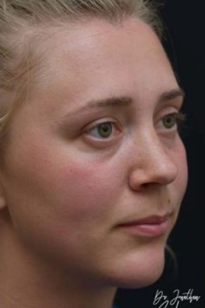 This beautiful 26-year-old young woman wanted to reduce the heaviness in her chin and neck and to create a slimmer, more contoured appearance. I performed Submental Liposuction and Chin Augmentation with an implant.