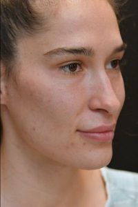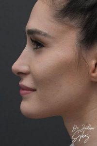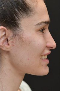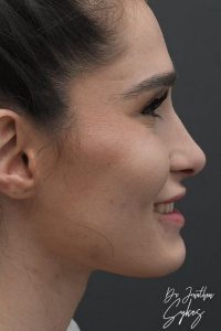 For her nose, she did not like the way the tip dropped when she smiled. She also wanted to reduce the size and width of her nasal bridge. For her chin, she wanted to reduce projection and create a softer, more feminine face shape.