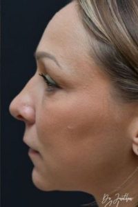 This beautiful woman felt that her nose was too big for her face, and her chin was too small. She wanted to remove the hook appearance of her nose, lift her nasal tip, and make her chin slightly bigger to be in balance with her other facial features.